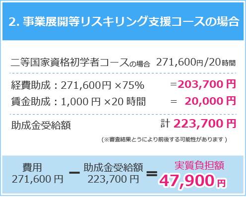 例)以下を講習に対して助成金を活用した場合のシミュレーション